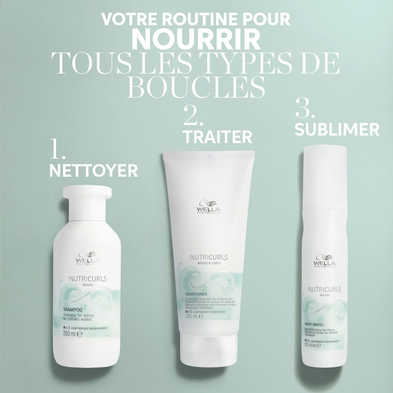 Nutricurls est la nouvelle gamme de Wella Professionals spĂ©cifiquement conçue pour rĂ©pondre aux besoins des cheveux bouclĂ©s et ondulĂ©s. Les cheveux bouclĂ©s de par leur nature ont un grand besoin d’hydratation afin de prĂ©server leur beautĂ© naturelle.