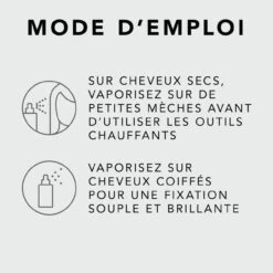 – Vaporisez sur des petites sections avant d’utiliser un sèche-cheveux ou un fer Ă lisser